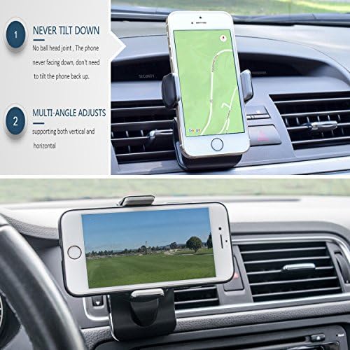 ? Sturdy & Secure – The phone car mount works reliably for application of triangular stability principle. No ball head joint, the phone will not tilt downwards automatically, you don’t need to tilt the phone back up. Padded button and wide gripping wings locking your phone from scratches, both sides of clamping arm use anti-slip silicone to prevent phone from sliding.
