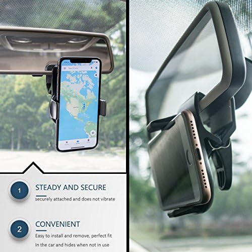 Micagos Cell Phone Holder for Car, 3-in-1 Car Phone Holder, Steering Wheel Holder Air Vent Holder Rearview Mirror Mounting in Vehicle for Universal Smartphones & GPS-Black