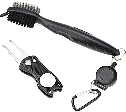 Mile High Life All Metal Foldable Golf Divot Tool with Magnetic Ball Marker & Club Groove Cleaner with Brush and Retractable Extension Cord Combo Set (2 Pack Multi-Colors)