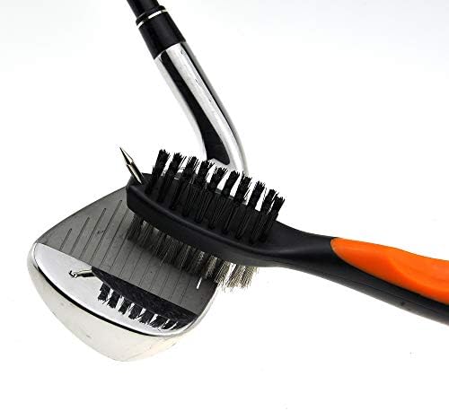 CLUB BRUSH GROOVE PICK: Powerful brush that wipes off tough dirt easily for any iron/wood clubs without scratches. Sharp pick for tough dirt in grooves. Soft and firm grip with good ergonomic design for any weather conditions,2 Ft Retractable zip-line can be attached to the bag and easy for reach and use during the play.