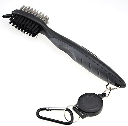 CLUB BRUSH GROOVE PICK: Powerful brush that wipes off tough dirt easily for any iron/wood clubs without scratches. Sharp pick for tough dirt in grooves. Soft and firm grip with good ergonomic design for any weather conditions,2 Ft Retractable zip-line can be attached to the bag and easy for reach and use during the play.