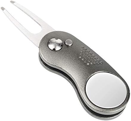 FOLDABLE DIVOT TOOL: Dimension 2 3/4 inch x 1 1/4 inch x 1/2 inch, avoid scratch in the pocket, Pop down button for easy unfolding. Full Metal with magnetic ball marker that attaches to the divot tool, easy push down to pop and reseat. Solid grip and feel.