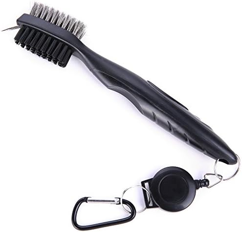 BRUSH: Powerful brush that wipes off tough dirt easily for any iron/wood clubs without scratches. Sharp pick for tough dirt in grooves Soft and firm grip with good ergonomic design for any weather conditions,2 Ft Retractable zip-line can be attached to the bag and easy for reach and use during the play.