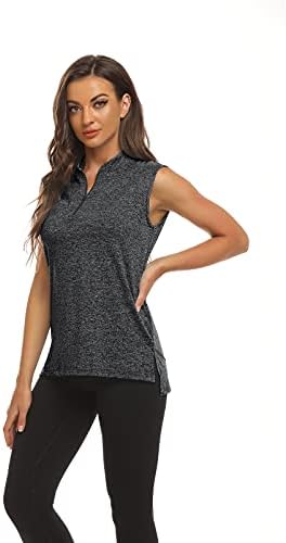 Misyula Style Womens Sleeveless Collarless Golf Polo Shirts Zip Up Workout Tank Top Dry Fit