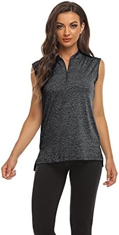 Misyula Style Womens Sleeveless Collarless Golf Polo Shirts Quick Dry Zip Up Athletic Tank Tops