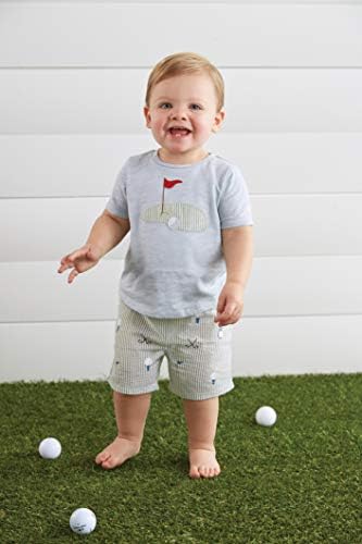 Juego de 2 piezas. Camiseta de manga corta de algodón con fieltro y aplique bordado de golf llega con pantalones cortos seersucker estampados.
