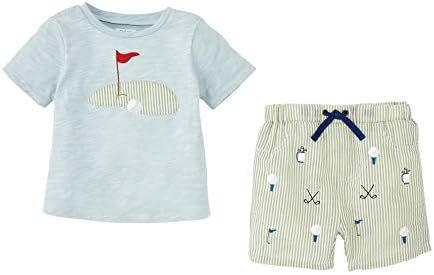 Juego de 2 piezas. Camiseta de manga corta de algodón con fieltro y aplique bordado de golf llega con pantalones cortos seersucker estampados.