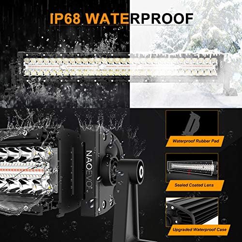 [Durable & brighter]- made of advanced LED chips, it have over 50,000 hours working lifespan in normal use. Naoevo 22″Amber White Off Road Lighting with 160 PCS Lamp Bead (White 60PCS, Amber 100PCS), give you the brighter wider and farther driving visual.