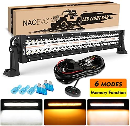 NAOEVO 22″ 160W Spot Flood LED Light Bar Amber White Off Road Lighting, 6 Modes Memory Function Driving Work Light with 10FT 3 Leads Wiring Harness for Truck Boat Tractor Jeep Pickup Golf Cart