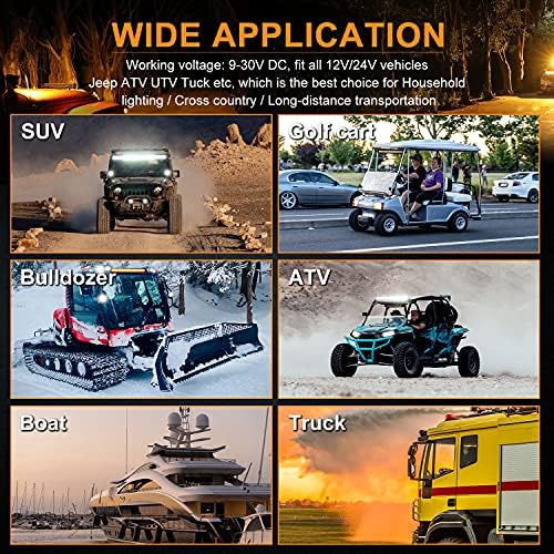 [Wide Application] – Suitable for various Off Road/ Jeep/ SUV/ ATV/ UTV/ Truck/Boat/Golf Cart/Tractor with DC 9V-30V. The light bar will be perfectly to be used as off road light, work light, fog light, driving light etc.