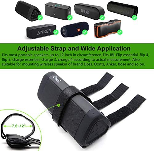 Adjustable Longer Straps. Fits most portable speakers up to 12 inch in circumference.Fits JBL Flip essential,flip 4,flip 5,charge essential,charge 3,charge 4 according to actual measurement. Also suitable for mounting wireless speaker of brand Doss, Oontz, Anker, Bose and so on.