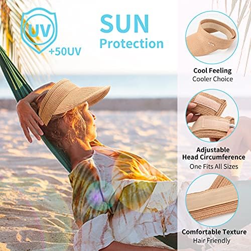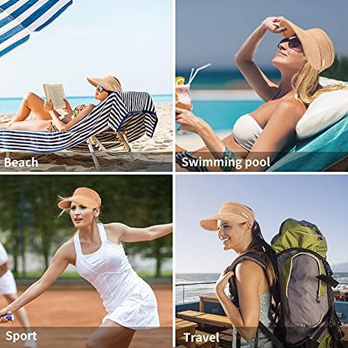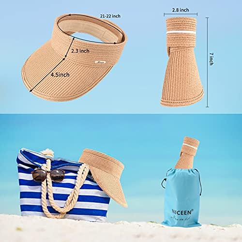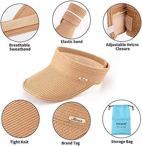 NICEEN Straw Sun Visor Hat for Women, Roll-up Foldable Wide Brim UPF 50+ Straw Beach Hat, Tennis Golf Sun Hat