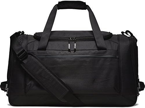 Durable storage for the essentials. Head to the course with all of your gear in one place with the NIKE Departure Golf Duffel Bag. Its classic design features a separate, ventilated shoe compartment and space at the front for a custom graphic. Dual handles and a detachable, adjustable shoulder strap provide versatile carrying options.