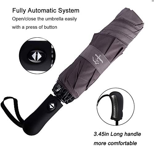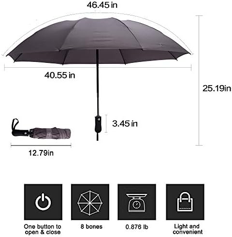 AUTO OPEN/CLOSE BUTTON DESIGN – Fully automatic system for one hand design, perfect for one-hand operation. Simply OPEN or CLOSE the automatic umbrella with a press of a button in only 1s to give you quick rain protection when your another hand is catching or carrying something.