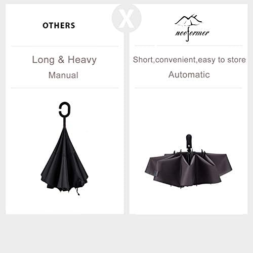 NOOFORMER Travel Inverted Automatic Umbrella – Reverse Windproof Golf Compact Lightweight Car Umbrellas for Men & Women