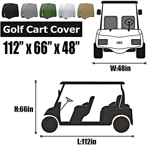 HOMEYA Golf Cart Cover,Waterproof Snowproof Golf Club Cover for 4 Passenger Seat Fit EZ GO,Club Car Precedent,Yamaha Drive Easy-On Golf Carts Cover with Rear Zipper Up to 112 Inch