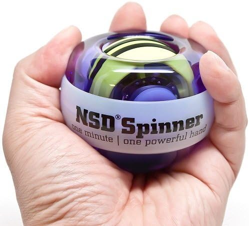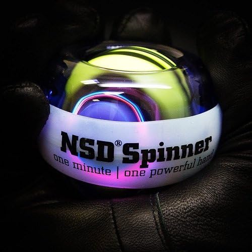 NSD Roll ‘N Spin Rainbow Lit AutoStart Spinner Gyroscopic Wrist and Forearm Exerciser with AutoStart and Multi-Lit LED, Purple