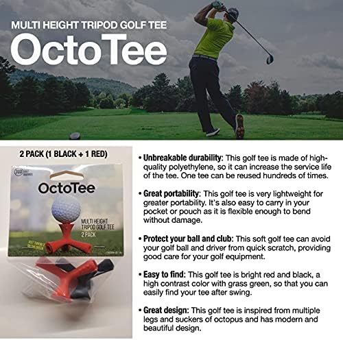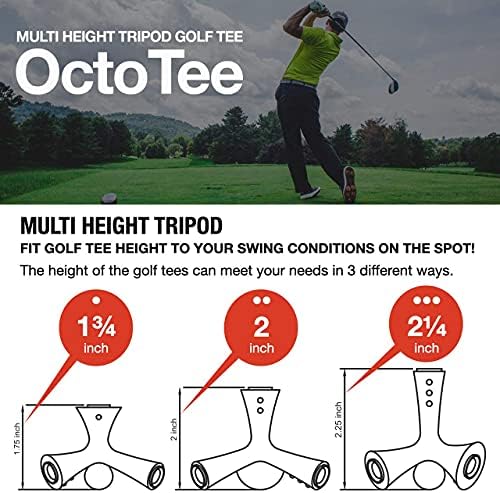 OctoTee Golf Tee, Flexible Tripod Colorful Rubber Golf Tee with Multi Height, Pack of 2