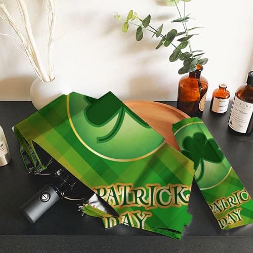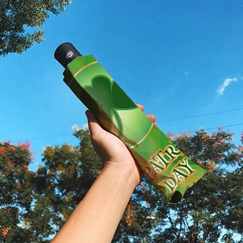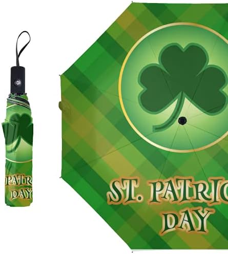 OcuteO Auto Open Close Umbrella St Patrick’s Day Pattern Clover Leaves Automatic Compact Travel Sun Rain Golf Windproof Folding Umbrella Portable Auto Open Close Parasol for Women Kids Men Girls