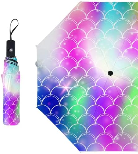 QUALITY WORKMANSHIP – Cool umbrella designed with a three-fold chrome plated silver metal shaft, and strong metal frame to allow for greater stability in high winds. The ergonomic, slip-proof, and rubberized grip handle with wrist strap allow for easy carrying. A protective travel sleeve is included. Automatic/compact /travel tri-fold umbrella Perfect for men, women, ladies, teens, youth and kids, girls, boys.