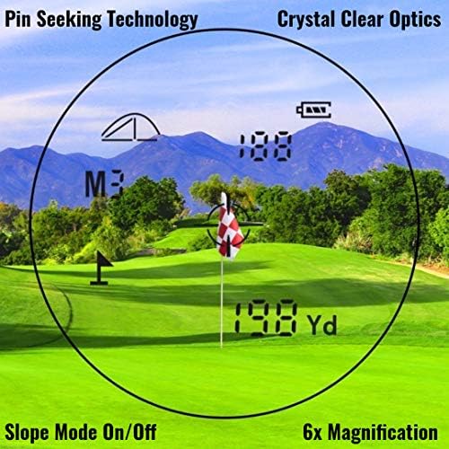 6X MAGNIFICATION plus ultra-clear optics visually enhances and brightens your target area AND Up to 800 yard range provides reliable measure to avoid trees, steer clear of bunkers, and ATTACK GREENS all day long