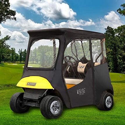 【Professional Designed】112″L x 48″W x 66″H,Suitable for most brand of golf carts.The three-zip design makes it easier to use. Special dyeing process and high-grade dyes is used to ensure there’s high colorfastness,excellent UV resistance makes fading very slow and minimally.Can be used as ezgo golf cart covers / club car golf cart covers / yamaha golf cart covers.