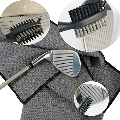 Perfshot Golf Towel and Golf Club Brush Groove Cleaner Set with Microfiber Waffle-Weave and Powerful Brush 16″ 24″