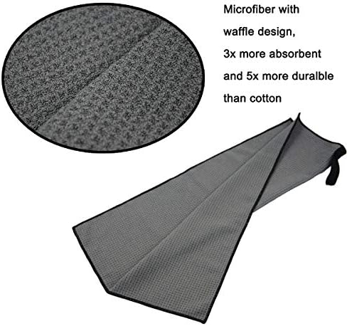 ⛳️Microfiber Waffle: Premium microfiber waffle construction which 3x more absorbent and 5x more durable than cotton, extremely effective at cleaning golf clubs and irons. 16”*24” large enough to keep part of the towel wet and part of the towel dry.