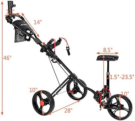 Be the first to review “PEXMOR Golf Push Cart, 3 Wheel Folding Golf Trolley w/Seat, Foot Brake, Umbrella Holder, Cup Holder, Scoreboard Bag, Easy Push and Pull Golf Cart”