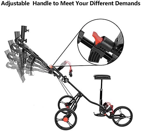 【Practical & Durable】- With a attractive finish body, it can perfectly will coordinate with any golf bag as you expected. Widely adopted as a strong and sturdy golf pull cart for its steel frame