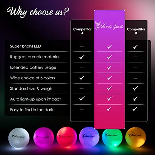 Phoenix Sports Led Golf Balls – Glow in The Dark Golf Balls for Night Sport Enthusiasts – Colorful Novelty Golf Balls That Light Up When Struck