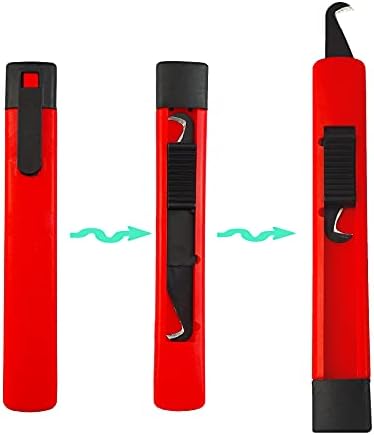 With shape retractable hook blade–The hook blade is hidden in the handle, making it safer and easier to carry. It can be pushed out when using. Pay attention to that the blade is very sharp, so push the blade back to the handle after using it. The hook on the top of the handle can be hung inside and outside the tool kit for easy searching.
