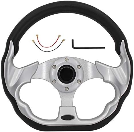 Podoy Universal Golf Cart Steering Wheel for Compatible with EZGO Yamaha Club Car Club Car DS and Precedent 12.5 inch Silver