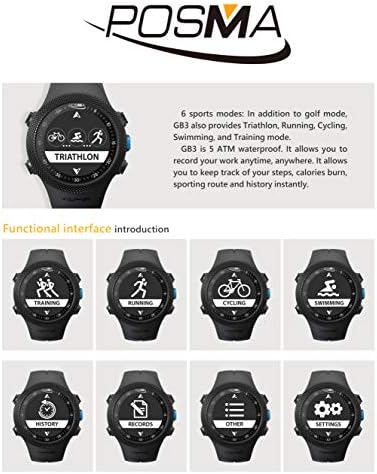POSMA GB3 Golf Triathlon Sport GPS Watch – Range Finder – Running Cycling Swimming Smart GPS Watch – Android iOS app