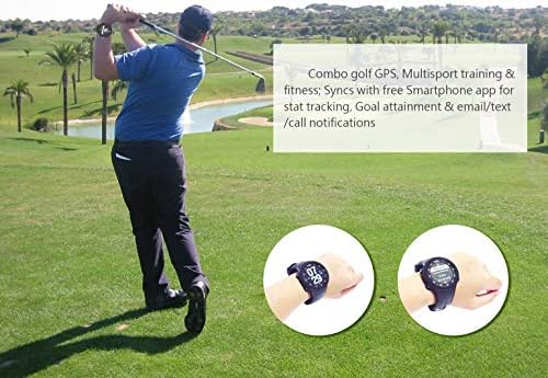★ Combo golf GPS, Multisport training & fitness; Syncs with free Smartphone app for stat tracking, Goal attainment & email/text/call notifications