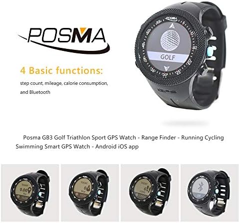 3. The GB3 Golf Watch Combo golf GPS, Triathlon, Multisport training & fitness; Syncs with free Smartphone app for stat tracking, Goal attainment & email/text/call notifications. ★Preloaded with over 30, 000+ global course maps; distances to F/C/B of green and layup/carry to hazards & doglegs. ★ Auto course-recognition & hole-advancement; shot distance measurement. ★ Fitness training – distance, time, speed, pace for running, cycling, swimming, triathlon. ★Steps & calories burned; set training/f
