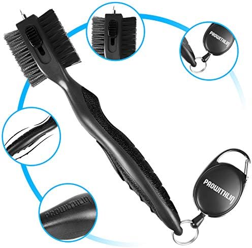 prowithlin Golf Club Brush and Golf Towel, 2 ft Retractable Zip-line Metal Buckle, Dual Bristles Nylon and Wire Bristles, Golf Club Brush and Groove Cleaner, Golf Gifts Accessories for Men and Women