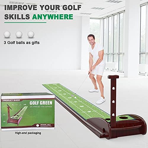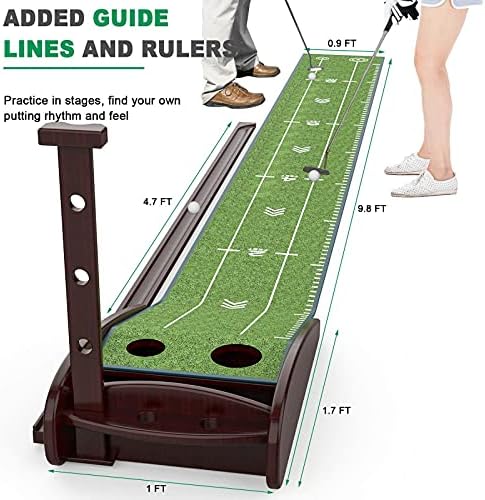 Putting Mat, Indoor Golf Putting Green with Auto Ball Return System, Crystal Velvet Practice Putting Mat for Home Backyard Office Outdoor Use