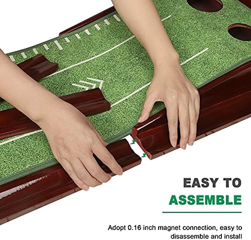 ❤Best Gift: Unlike the plastic base, Meswi indoor golf putting green base is made of superior solid wood. 0.16in magnets are used between the tracks. After spreading, the tracks can be connected in sequence to use the golf green mat, which is easy to disassemble and install. You can use golf matt in the home, office, backyard, and all flat areas. And the packaging is high-end, it’s the best gift choice for family and friends.