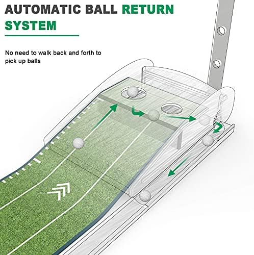 ❤Automatic Ball Return System: After the ball enters the hole, the ball will roll back to the golf putting green surface along the track from the groove below, and the baffle on the side of the track can prevent the ball from popping out when it comes out of the hole. With our putting green with ball return, you don’t need to walk back and forth to pick up the ball and can concentrate on playing golf.