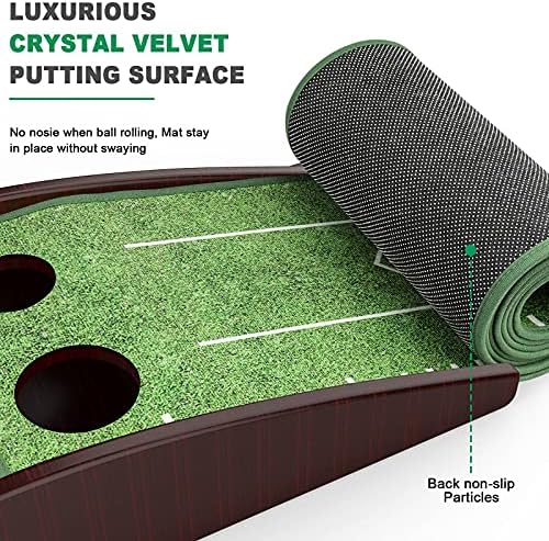 ❤Luxurious Crystal Velvet Putting Surface: The indoor putting matts surface is carefully selected soft crystal velvet. The thickness is thicker than ordinary putting mats can ensure that no noise is generated when the ball rolls. Indoor putting green back is designed with non-slip particles, which can effectively prevent the putting mat from shifting and provide you with a stable putting experience.