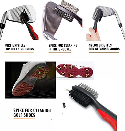 QHALEN Brush and Groove Cleaner Set 2 Ft Retractable Zip-line Aluminum Carabiner for All Golf Irons and Clubs Clean