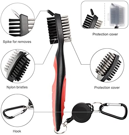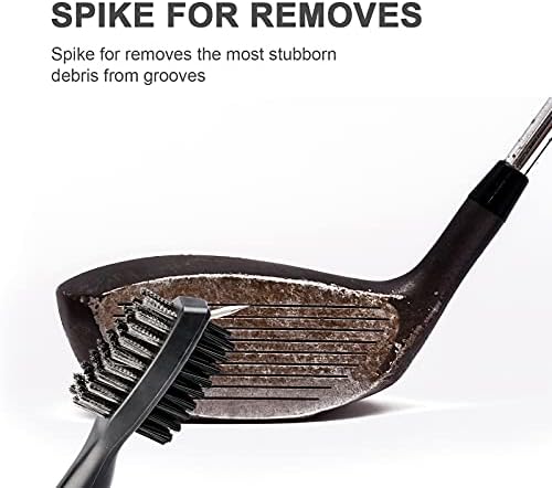 Double-Sided design:Nylon bristles and steel wire, can effectively and quickly clean the club,Sharp pick for stubborn dirt and grime in grooves, removes the most stubborn debris from grooves