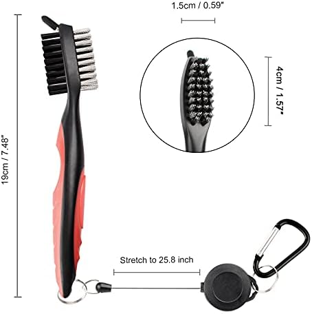 Qidie Golf Club Brush Groove Cleaner Brush Nylon & Steel Brush Double Sided with Spike Retractable Zipper Line Durable Cleaning Tools Carabiner-Lightweight Ergonomic Design (red)