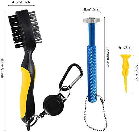 Golf Cleaning Kit: In the package, you will get 1 golf club cleaning brush, 1 blue groove sharpener, and 5 yellow golf ball nails. We are committed to creating high-quality products and serving our customers. If you are not satisfied with the products, please contact us in time, and we will provide you with the best after-sales service.
