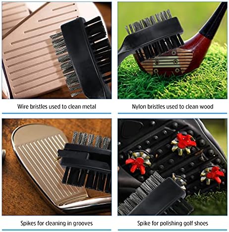 Practical Accessory for Golf: The golf cleaning kit is composed of the groove sharpener tool, golf ball nails, and club cleaning brush with an aluminum carabiner, which durable, high-grade, and effective. It can be restoring it, even with an old golf club, generate optimal backspin. This cleaning kit is the perfect and practical accessory for the golf club.