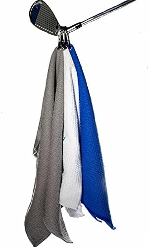 Ralch Wysom 3 Packs Golf Towels for Golf Bags with Clip and Golf Brush for Men Women, Waffle Microfiber White/Grey/Blue Golf Sport Accessories for Ball Clean Wiping Sweat,Size16 x24