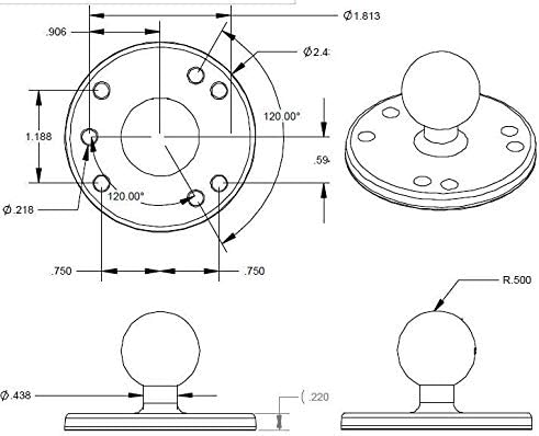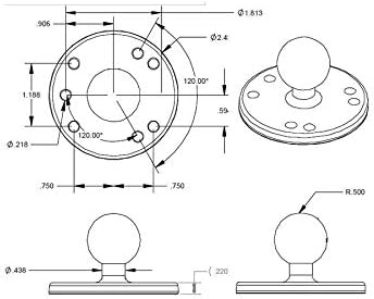 The RAM-B-202U consists of a B Size 1″ diameter rubber ball connected to a flat 2.5″ diameter plate. This mount has pre-drilled holes, including the universal AMPs hole pattern