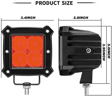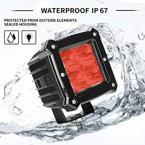 Red Led Pods Light Bar – 3.4 Inch 40W Square Work Hunting Fishing Driving 12V/24V Fog Cube Light Waterproof Spot Beam for Truck Pick-up Boat Off-Road ATV UTV Golf Cart 4X4 Motorcycle (Pack of 2)
