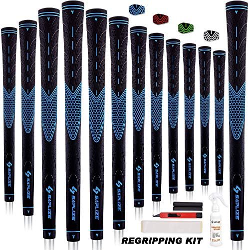 SAPLIZE Golf Grips Standard/Midsize 13 Grips with 15 Tapes or 13 Grips with Full Regripping Kit Anti-Slip Rubber Golf Club Grips